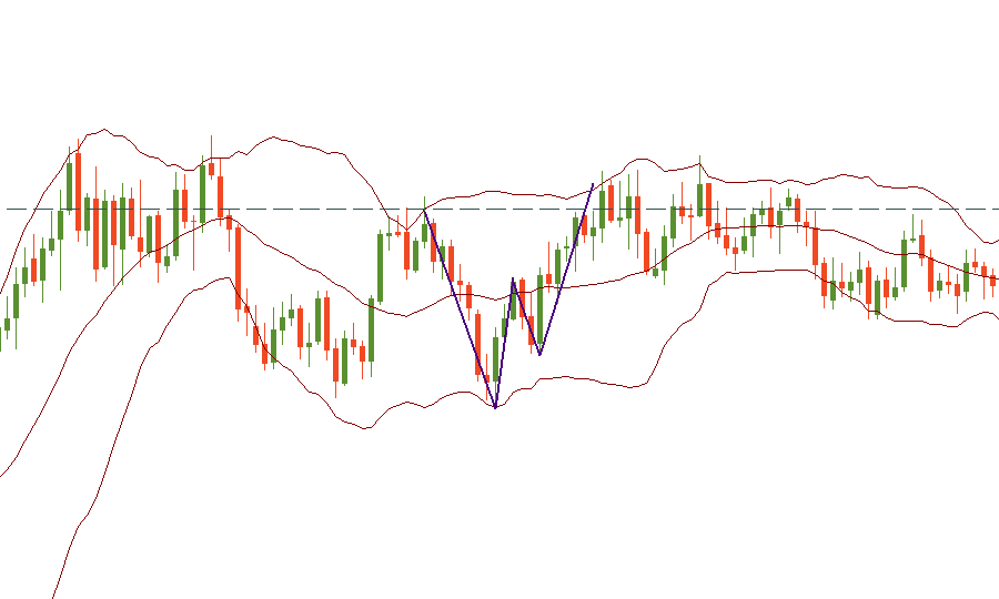 Bollinger Bands help to determine how big the deviation from the average price of a currency pair is.